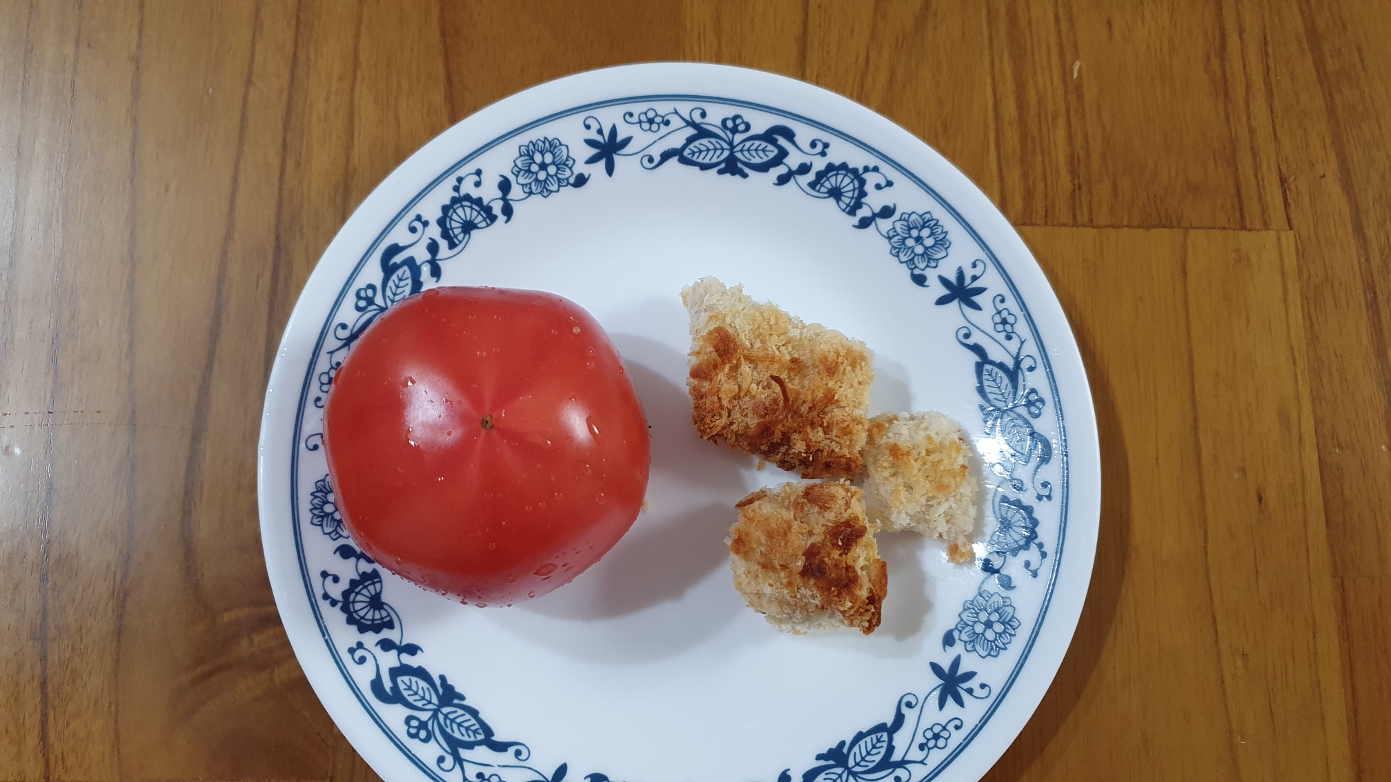 운동하고 돌아와서 토마토 한 개와 아이들이 저녁먹고 남은 돈까스 3조각...을 먹으려고 했습니다만....ㅋㅋㅋ