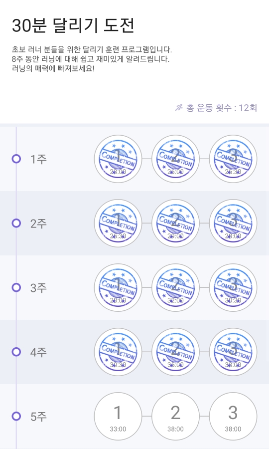 Runday 4주 3회차는 3분 달리고 2분 쉬는 과정이었어요.