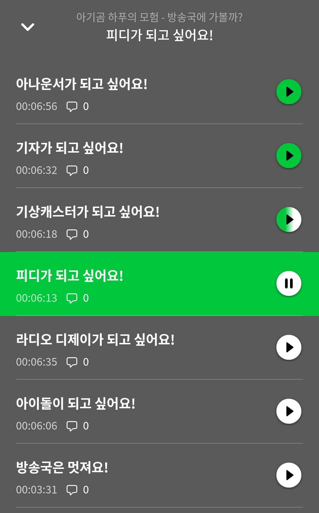 윌라 오디오북에는 총 시리즈가 16개가 있는데요. 이런 동물 소개 외에도 장소 소개(병원, 방송국, 경찰서 등) 의성어, 의태어 시리즈 등 굉장히 다양한 분야에 걸쳐 이야기가 있습니다.